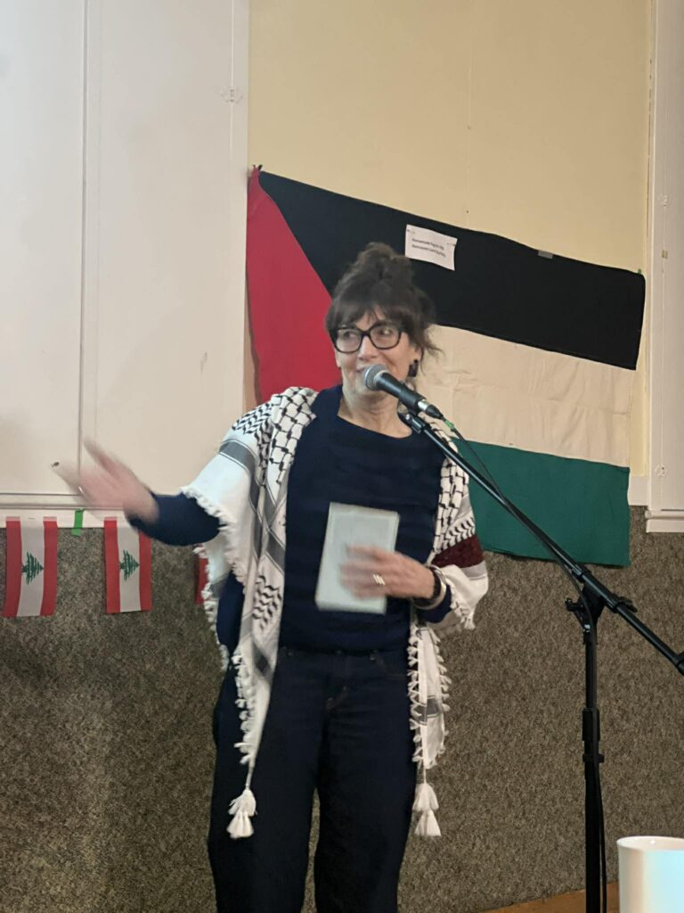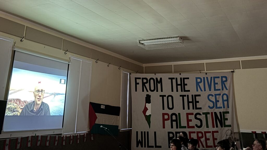 Great Teach-in on Canadian Complicity on Palestine: Challenging it with Boycott *Note the homemade Palestinian flag on the wall that was used in 1976 for the first local Land Day protest