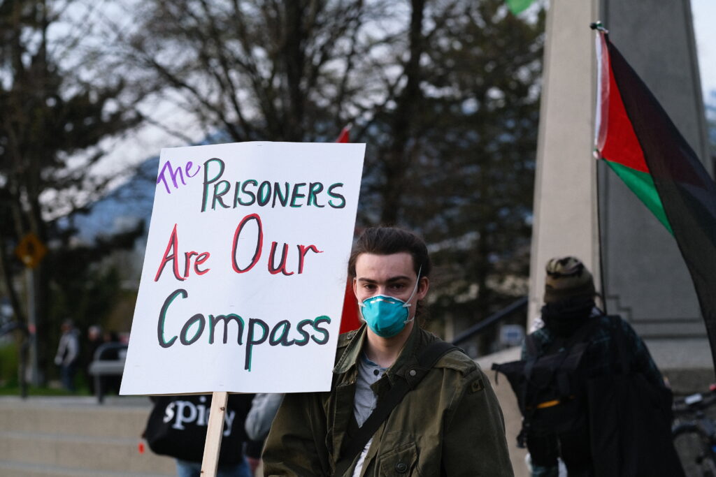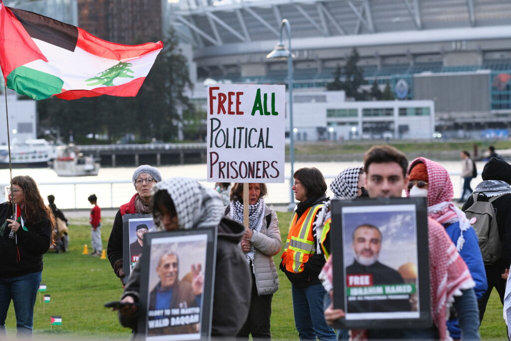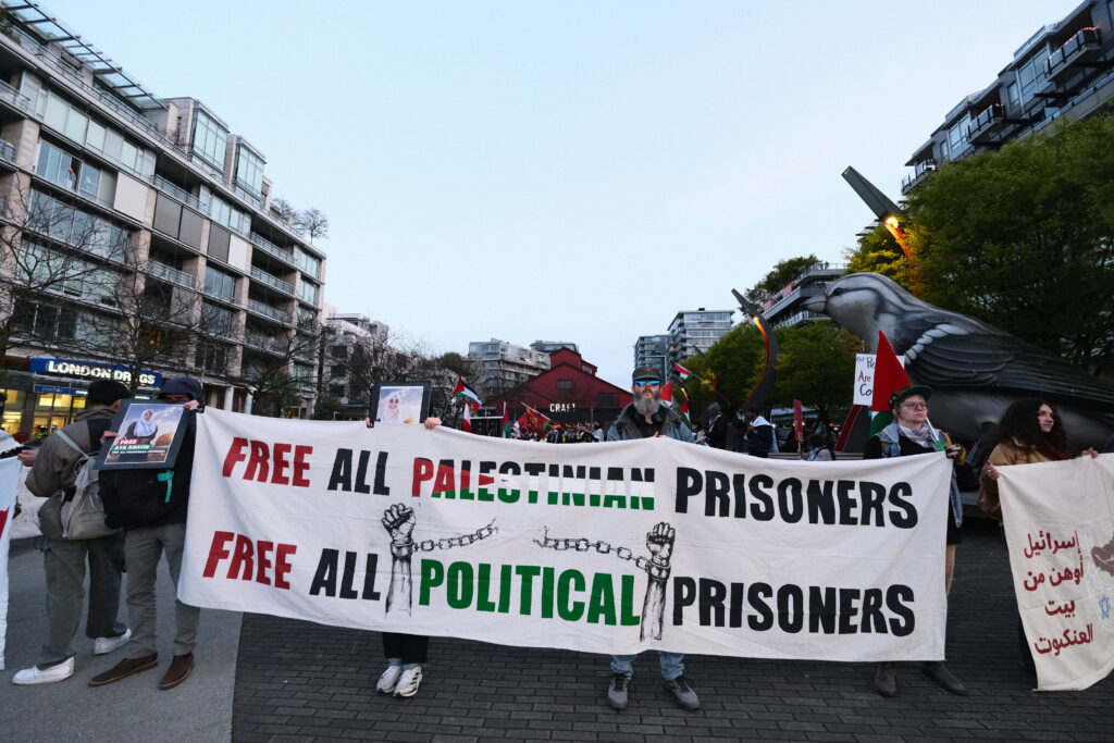 Great photo and video highlights from the rally and march in “Vancouver” to mark Palestinian Prisoners Day. The prisoners are our compass and they are supported by all of the Palestinian national collective.